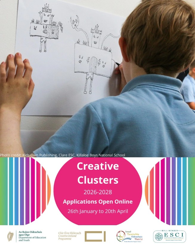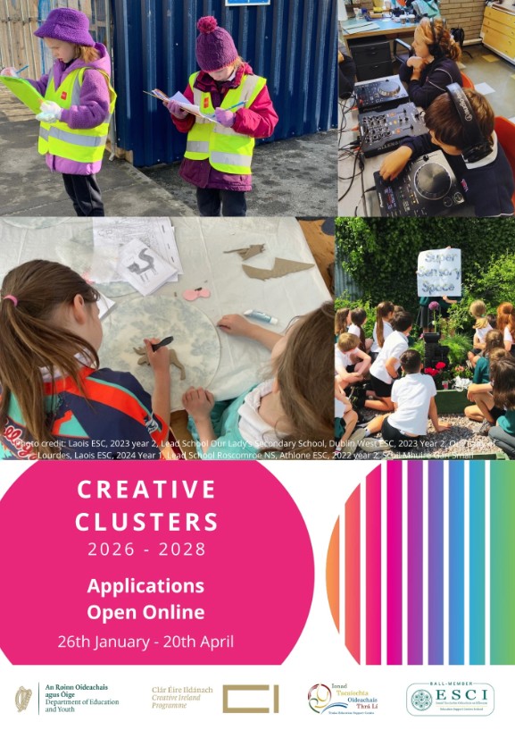 Creative Clusters is a key initiative of the Department of Education and Youth, and part of the Creative Youth Plan 2023-2027, run in partnership with the Education Support Centres Ireland (ESCI) network through all its 21 full-time education centres.