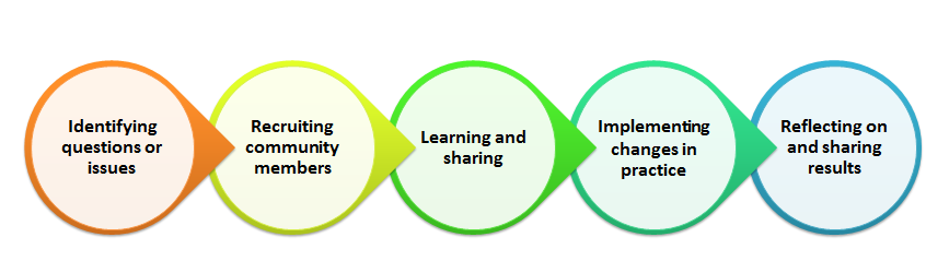 A typical community of practice has a finite lifespan and goes through a series of overlapping phases. Each phase involves activities that help participants build knowledge and achieve goals.